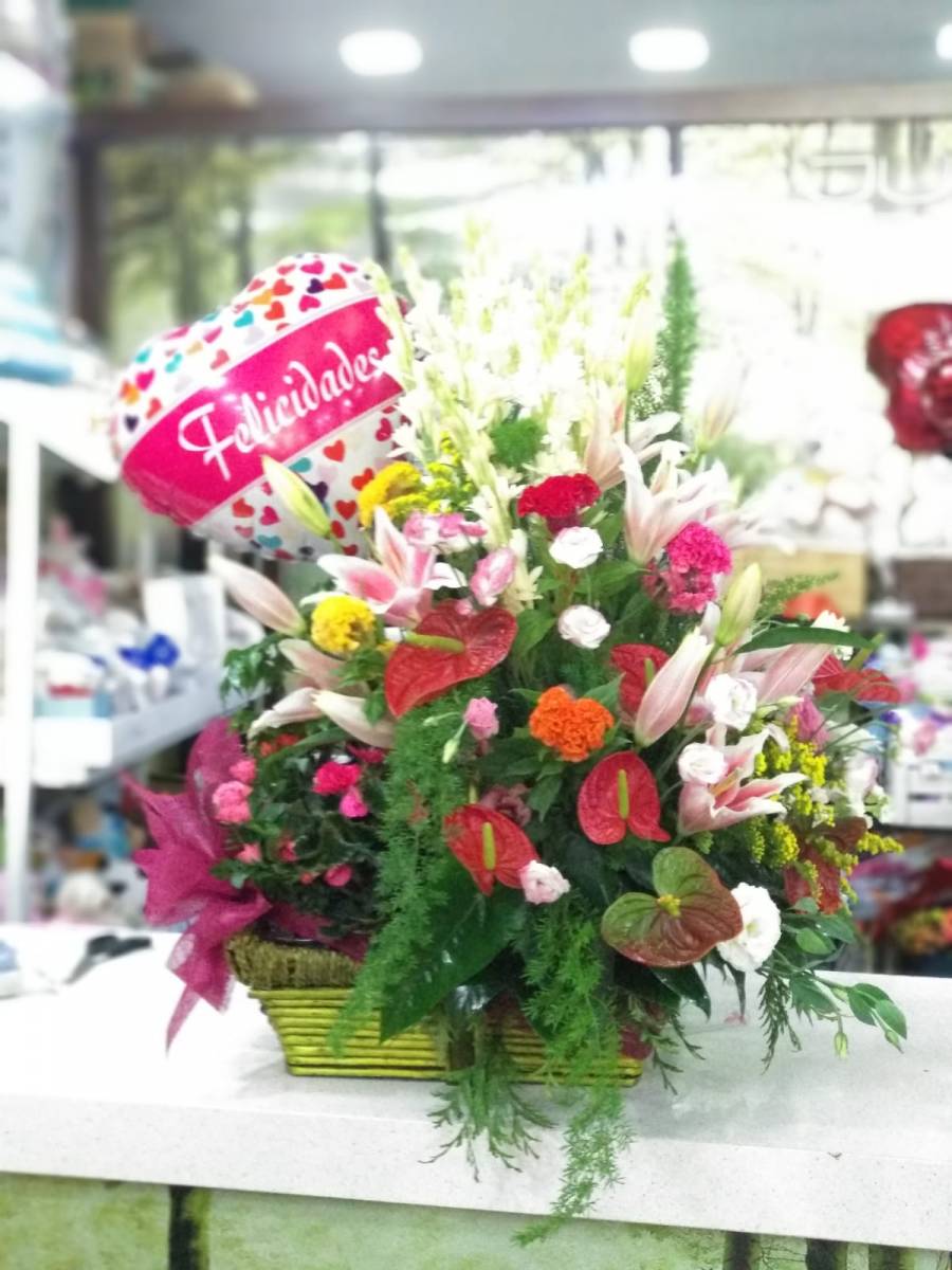 Cesta flores variada, perfecto para el día de la madre, nacimientos o cumpleaños.